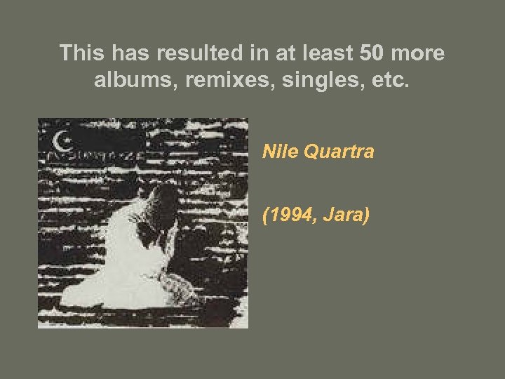 This has resulted in at least 50 more albums, remixes, singles, etc. Nile Quartra (1994, Jara)