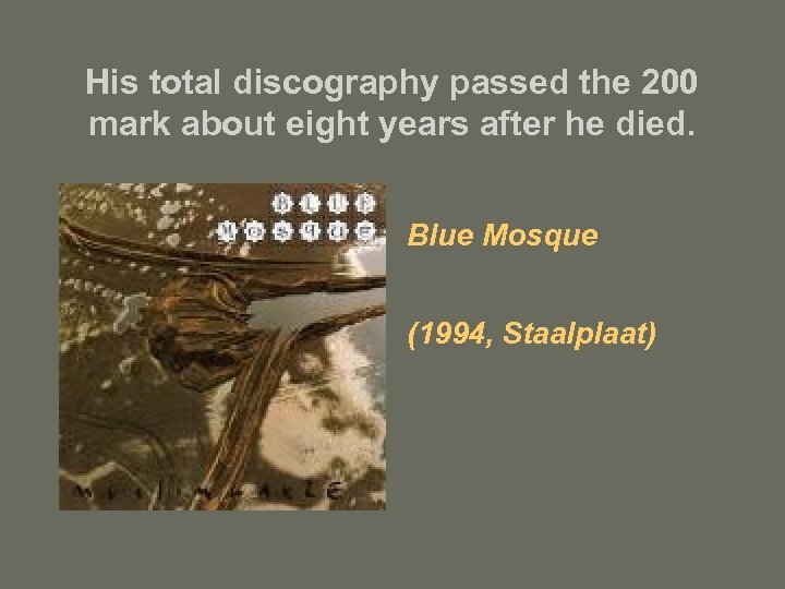 His total discography passed the 200 mark about eight years after he died. Blue Mosque (1994, Staalplaat)
