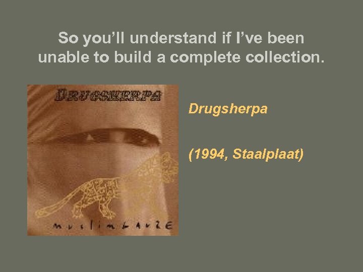 So you’ll understand if I’ve been unable to build a complete collection. Drugsherpa (1994, Staalplaat)