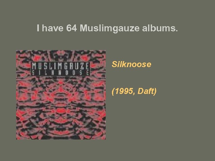 I have 64 Muslimgauze albums. Silknoose (1995, Daft)