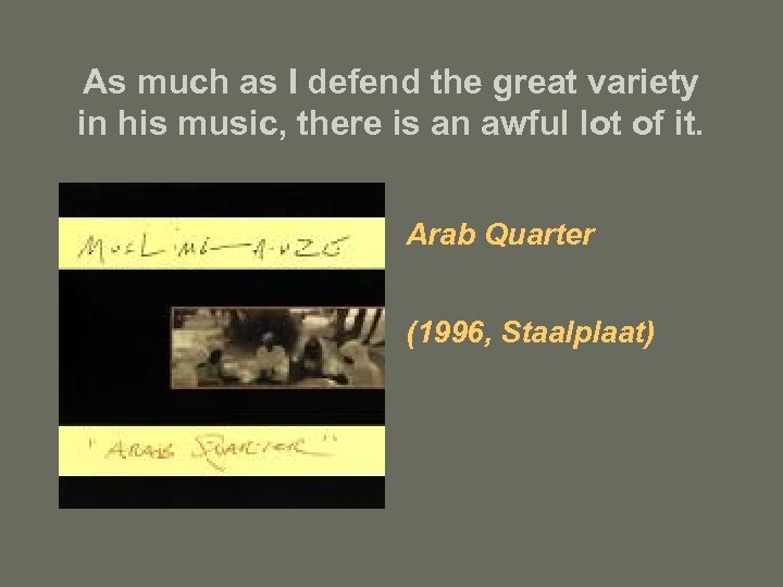 As much as I defend the great variety in his music, there is an awful lot of it. Arab Quarter (1996, Staalplaat)