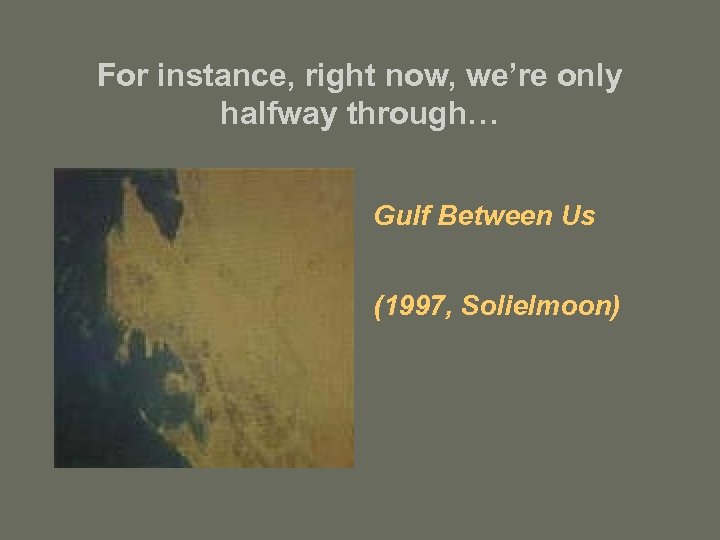 For instance, right now, we’re only halfway through… Gulf Between Us (1997, Solielmoon)