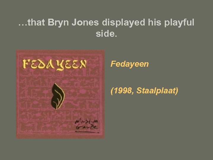 …that Bryn Jones displayed his playful side. Fedayeen (1998, Staalplaat)