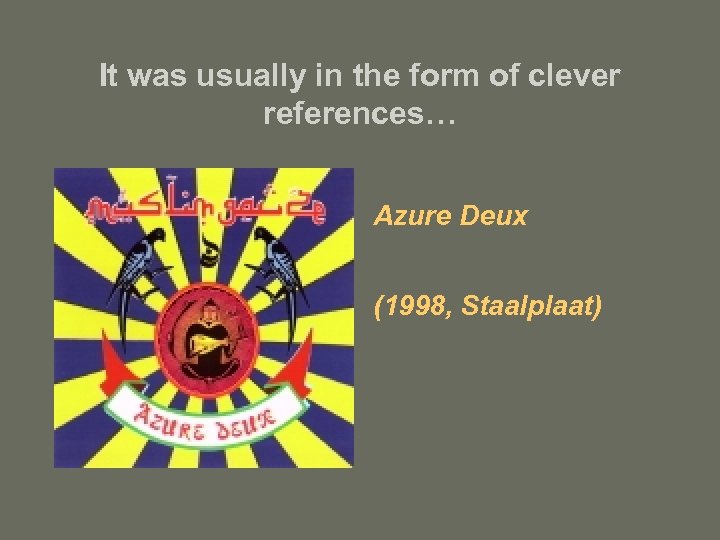 It was usually in the form of clever references… Azure Deux (1998, Staalplaat)