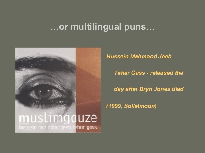 …or multilingual puns… Hussein Mahmood Jeeb Tehar Gass - released the day after Bryn Jones died (1999, Solielmoon)