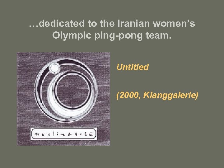 …dedicated to the Iranian women’s Olympic ping-pong team. Untitled (2000, Klanggalerie)
