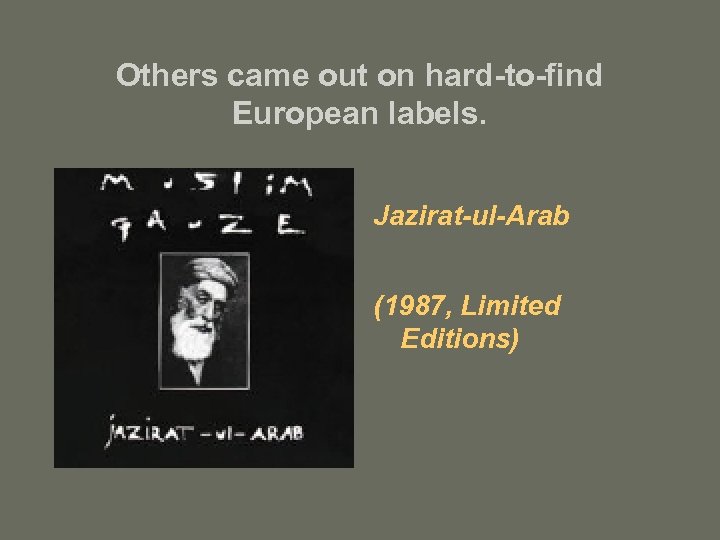 Others came out on hard-to-find European labels. Jazirat-ul-Arab (1987, Limited Editions)