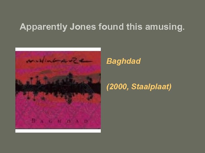 Apparently Jones found this amusing. Baghdad (2000, Staalplaat)