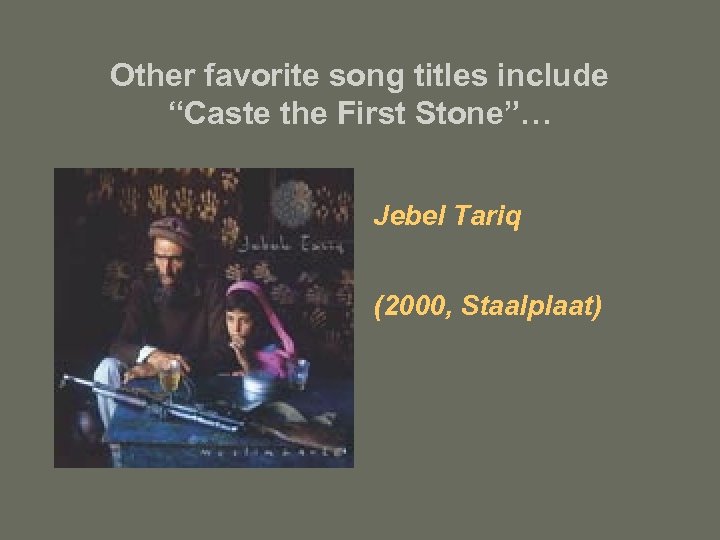 Other favorite song titles include “Caste the First Stone”… Jebel Tariq (2000, Staalplaat)