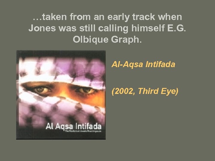 …taken from an early track when Jones was still calling himself E. G. Olbique Graph. Al-Aqsa Intifada (2002, Third Eye)