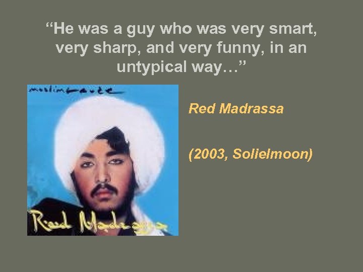 “He was a guy who was very smart, very sharp, and very funny, in an untypical way…” Red Madrassa (2003, Solielmoon)