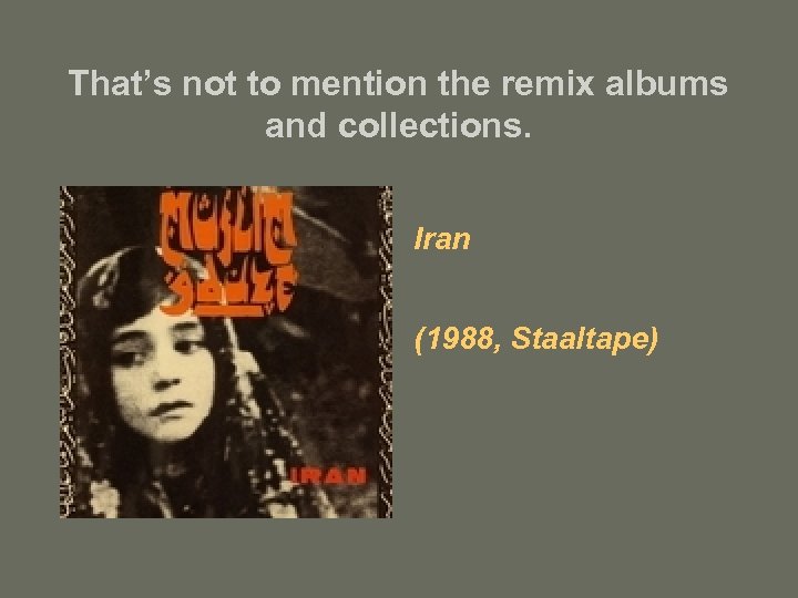 That’s not to mention the remix albums and collections. Iran (1988, Staaltape)