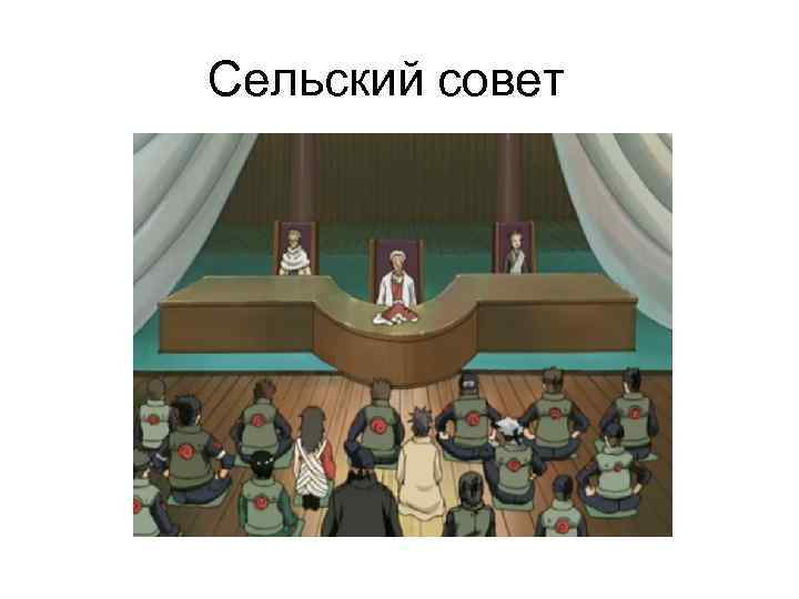 Сельский совет • Сельский совет ответственен за выбор и одобрение новых Чунинов, Джонинов и Каге для соответствующих деревень. В каждой деревне есть свой совет. Решение, кто станет наследником Каге, остаётся за самим Каге. Совет лишь одобряет выбор. Однако если Каге преждевременно погибает, наследника выбирает совет. • Так было после того как Сарутоби пожертвовал своей жизнью ради деревни. Сначала совет решил что. Джирайя станет следующим Хокаге, но тот отказался и предложил Тсунаде, которая стала пятым Хокаге. • Так же совет Конохи организовал уничтожение клана Учиха. После того как совет узнал о планах переворота, он и Данзо приказали Учихе Итачи уничтожить свой клан, что бы те не смогли захватить Коноху