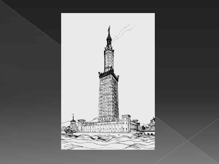 Александрийский маяк - маяк, построенный в III веке до н. э. на острове Фарос около египетского города Александрии. Маяк был построен для того, чтобы корабли могли благополучно миновать рифы на пути в александрийскую бухту. Ночью им помогало в этом отражение языков пламени, а днём — столб дыма. Маяк простоял почти тысячу лет, но в 796 г. н. э. был сильно поврежден землетрясением. Впоследствии пришедшие в Египет арабы пытались восстановить его, и к XIV в. высота маяка составляла около 30 м. В конце XV в. султан Кайт-бей воздвиг на месте маяка крепость, которая стоит и сейчас.