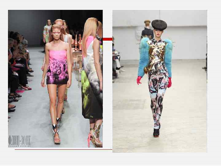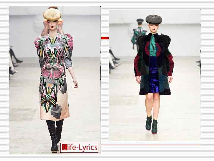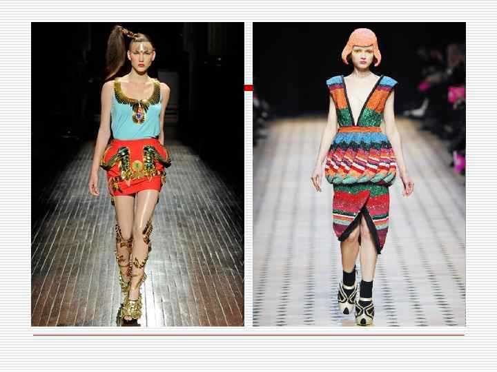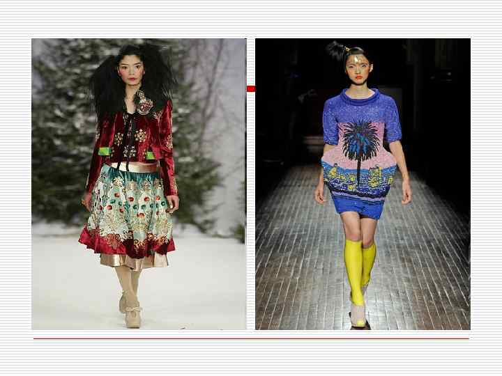 Примеры использования контраста теплого и холодного в одежде. Цвета взяты с 8 слайда.