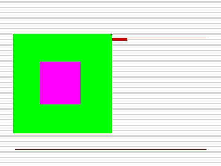 o Представленная здесь система количественных соотношений имеет силу только при использовании цветов в максимальной их яркости. При её изменении меняются и соответствующие размеры цветовых площадей. Оба фактора — и яркость, и размер цветовой плоскости самым тесным образом связаны между собой. На рисунке 46 красный и зелёный цвет даны в равных пространственных соотношениях. Красный и зелёный как комплиментарные (дополнительные) цвета, обладая равными пространствами своего цветового поля, создают ощущение устойчивой, прочной гармонии. Но в том случае, когда эти пространственные соотношения нарушены, возникает иррациональное беспокойство. Если в цветовой композиции вместо гармоничных пространственных отношений между цветами доминирует какой-то один цвет, композиция приобретает особо экспрессивную активность. Конкретность выбранных соотношений определяется поставленной целью и зависит от темы картины, художественного чутья и вкуса художника. o При резко выраженном контрасте распространения цветов они начинают производить совершенно новое впечатление. o На рисунке 47 красный цвет представлен в предельно минимальном количестве. Зелёный по отношению к нему занимает огромную площадь, в связи с чем по закону симультанного контраста красный, наоборот, начинает звучать очень ярко.