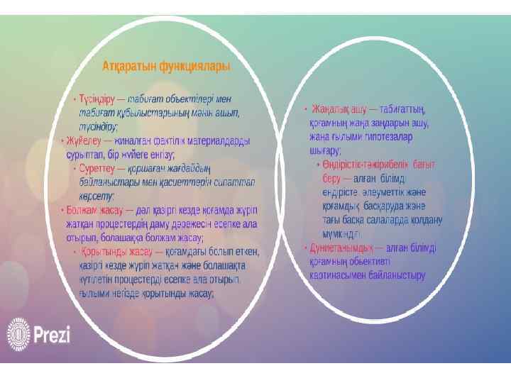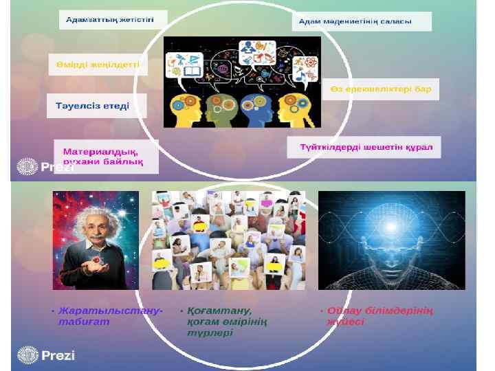 Қорытынды: Ғылым - тәжірибе жүзінде анықталған нақты дәлелдемелер мен логикалық заңдарға сүйенетін қорытындылардың негізінде білім әлемін жасайды. Бұл әлемнің субъективті элементі болып саналатын адамзатқа, оның игілікті бағдарына шамалы ғана рөл бөлінеді (бұл үшін өнер, мораль, дін бар). Сондықтан бірбірін толықтыра отырып, мәдениеттің бұл құрамдас бөліктері табиғат пен адамзат арасында байланыстырушы тізбек болып саналады. Сөз жоқ, ғылым - адамзат мәдениетінің орасан зор жетістігі болып саналады. Ол адамзат өмірін ұрпақтан-ұрпаққа жеңілдетіп, тәуелсіз етеді және материалдық, рухани байлықтың негізіне айналады.