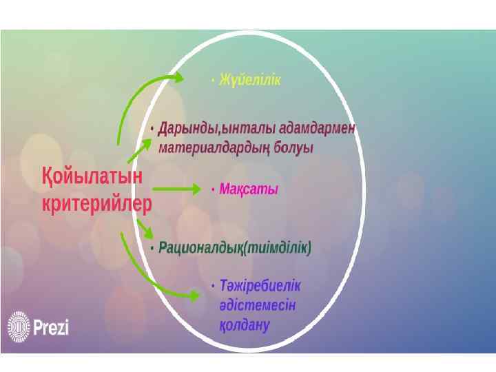 Зерттеу жұмыстарын бағалау критерийлері. Параметр Негізделген бағалар Егер автор (лар) жаңа ғылым жолдарды табуда шығармашылық қабілет танытса, онда жеке жоба үшін 25 -30 балл, ал топпен орындалған жобаға 20 -25 балл қойылады. Егер жаңа тәсілдерге талдау жасауға шығармашылық қабілеті жетіп жатса, онда жеке жоба үшін 20 -25 балл, ал топтық жобаға 15 -20 бал қойылады. 10 -20 мен 10 -15 балл мәліметтерді жеткізу шығармашылық қабілетіне қойылады. 10 -ға дейінгі баллдар жоба рефераттық сипатта болған жағдайда беріледі. Шығармашылық қабілеті Ғылыми ойлау Зерттеу дағдыларын қолдану әдістерінің тиімділігі Тақырыптың ашылу деңгейі Сөйлеу шеберлігі, материалдың жеткіліктілігі Топ мүшелерін -Жұмыстың нақтылығы мен қажеттілігіне қарай; -Күтілген нәтижесінің құндылығына қарай; -Нақты жоспары мен міндеттеріне қарай; -Автордың зерттеу кезеңдеріндегі көрегенділігіне қарай; -Автордың түсінігіне қарай; -Келесі зерттеу кезеңдеріңдегі автордың идеясына қарай; -Ғылыми әдебиеттерге жасалған сілтемелеріне қарай; -Жұмыстың мақсатына қарай; -Зерттеу нәтижесінің қажеттілігіне қарай; -Нәтижесінің жүзеге асырылуына қарай. Егер автор жұмыс барысында қазіргі заманғы техникаларды қолдана отырып , жаңа нәтижелер алуда тиімді тәсілдер көрсете білсе, онда жеке жобаға 15 балл, топтық жобаға 12 балл қойылады. Бұл мынадай негізгі параметр бойынша қойылады: - Жұмыс жоспарланған сатыларда орындалды ма? -Шешілетін мәселе толық қамтылды ма? -Жеке эксперимент қорытындысы негізделген бе? -Материал жобада толық қамтылды ма? -Автор мәселенің басқа шешу жолын біле ме? Балдар мынадай критерийлер бойынша қойылады: üАвтордың баяндау тәсілі; üМатериалдың толықтығы; üЖобаның негізгі сәттерін көрсете білуі üЖобада пайдаланылған эксперимент материалдарының жеткіліктілігі. üСтенд материалының құндылығы Баға мынадай критерийлерді басшылыққа алады: üӘрбір қатысушы міндеттерінің айқындылығы;