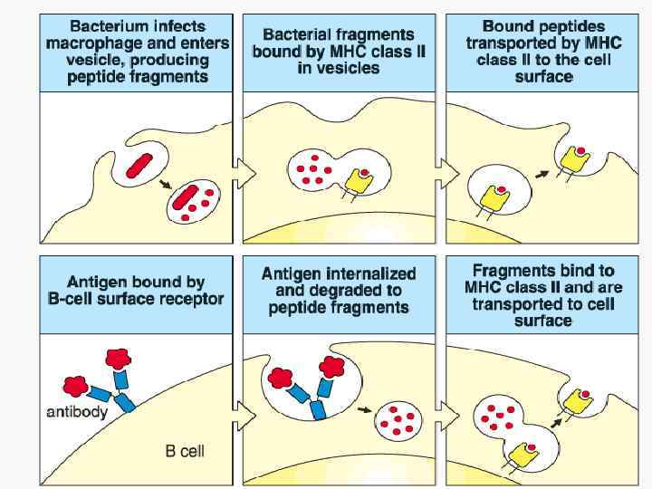 Антигенді таныстыру бірнеше кезеңнен тұрады: • • • 1) Жасуша ішіне түскен антиген өңделуге ұшырайды, бұл үрдіс кезінде нәруызды молекулалар шектелген протеолиз арқылы пептидті фрагменттерге ыдырайды, олардың бір бөлігі антигенді эпитоп болып табылады. 2) Түзілген пептидті фрагменттер АТЖ вакуольдері ішінде II немесе I класс HLA (адам лейкоциттерінің антигендері) антигендерімен иммуногенді кешен түзеді. 3) Түзілген кешен АТЖ мембранасына тасымалданады, бұл жерде оның Т-хелперлерге және Т-киллерлерге ұсынуы өтеді.