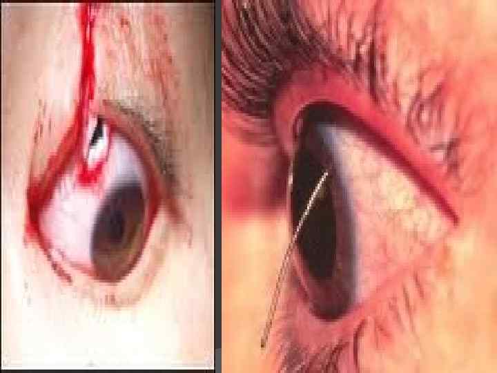 Көп жағдайларда ауыр емес деген жарақаттың өзі әр түрлі асқынуларға әкеп соқтыруы мүмкін: стафилококк, стрептококк микробтары шақыратын іріңді инфекциялар, қасаң қабақ жаралары т. б болуы мүмкін. Әсіресе қауіпті көк іріңді таяқша өйткені оның іріңді қабынуын емдеу қиынға соғады.