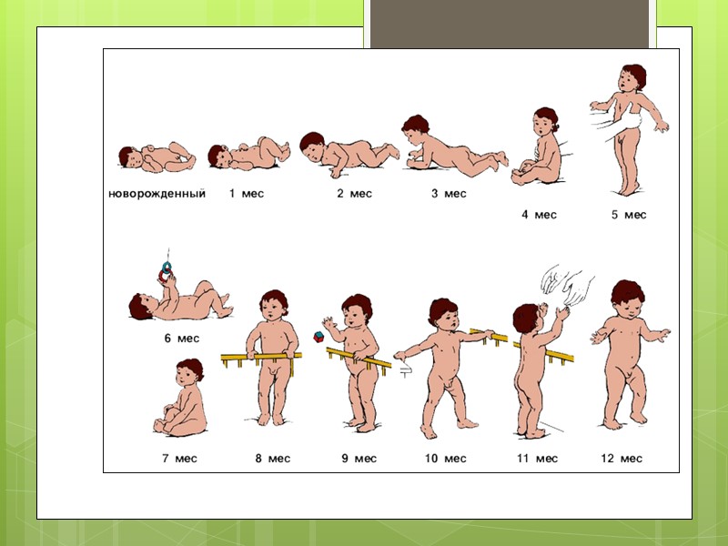 Жасқа дейінгі балалардың қалыпты жүйкелік әрекеттері: 1ай . Ашық түсті заттарға көзін тоқтатып қарайды, жымия бастайды. 2 ай. Ояу кезінде тыныш жатады, ілулі ойыншықтарды қызықтайды. Ересек адамдар сөйлегенде ұзақ жымияды, басын жақсы көтереді. 3 ай. Қатты күледі қуанғанын күлімдеп білдіреді. Басын жақсы ұстайды, қолына сүйеніп, етбетінен жатады.