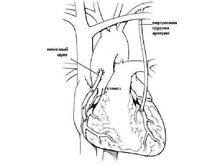 Аортакоронарлы шунттау АКШ • Президенттер опреациясы деп атайды • 1964 жж Колесов ашқан. 1966 ж. Бұл операцияға шектеу қойылды. Батыста қайта ашылуы болды. Көрсеткіштері: • Медикаментозды терапияға резистентті ауыр стенокардия • Сол жақ тәждік артерияның және негізгі артерияның 75 пайызға бітелуі • Миокардтың жиырылығыштық қабілетінің сақталуы, сол жақ қарынша лақтырыс фракциясы 40 болуы • Жүрек аневризмасының болуы • 3 не одан көп артерияның зақымдалуы Қарсы көрсеткіштері: • Барлық тәждік артериялардың диффузды зақымдалуы • Сол жақ қарыншаның тыртықталуы салдарынан лақтырыс фракциясының 30 пайызға төмендеуі • Созылмалы жүрек жеткіліксіздігі Жалпы қарсы көрсеткіштері: • Созылмалы жүрек жеткіліксіздігі • Өкпенің созылмалы аурулары • Бүйрек жеткіліксіздігі • Онкологиялық аурулар