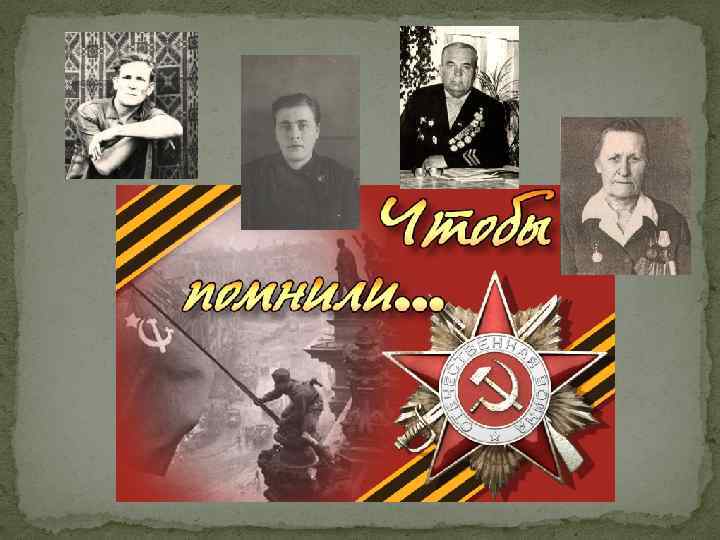 Арышев Пётр Анисимович Арышева Ангелина Ивановна Жолобов Михаил Моисеевич Мартынова (Жолобова) Агриппина Фёдоровна Нашим ветеранам К 70 -летию Победы Посвящается…