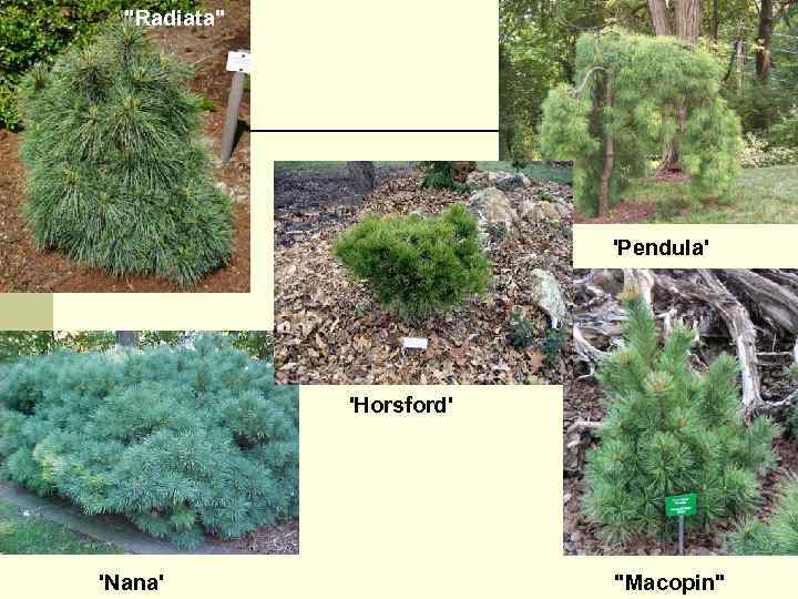 "Radiata" 'Pendula' 'Horsford' 'Nana' "Macopin"