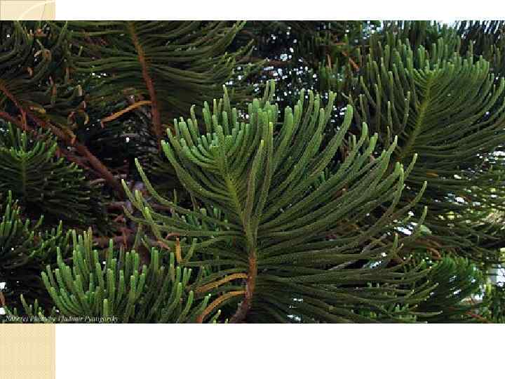 Отдел Голосеменные Класс Хвойные Представители: Ель, сосна, пихта, кедр, лиственница, можжевельник, кипарис, тисс, туя, секвойя, араукария.