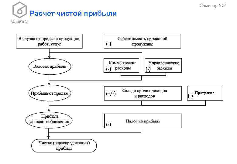 Семинар № 2 Расчет чистой прибыли Слайд 3 (-) (+/-) (-) (-) Проценты