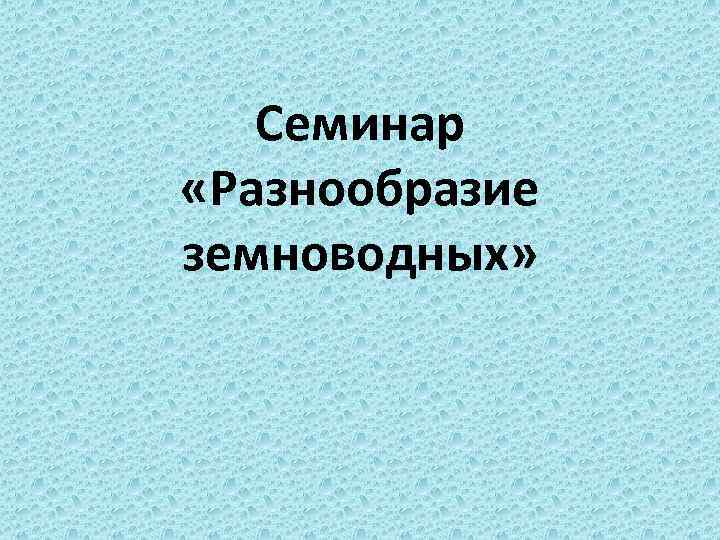 Семинар «Разнообразие земноводных»