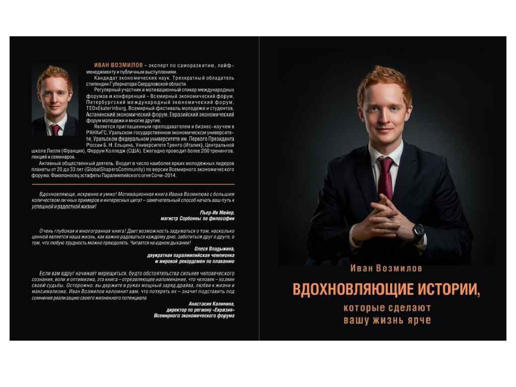 “Что же делать, если наша жизнь так коротка и никогда нет полной уверенности, что наступит завтра? Бояться? Ответ очевиден – УСПЕВАТЬ ЖИТЬ СЕГОДНЯ!!!!” Иван Возмилов, Лайф-коуч, бизнес-тренер