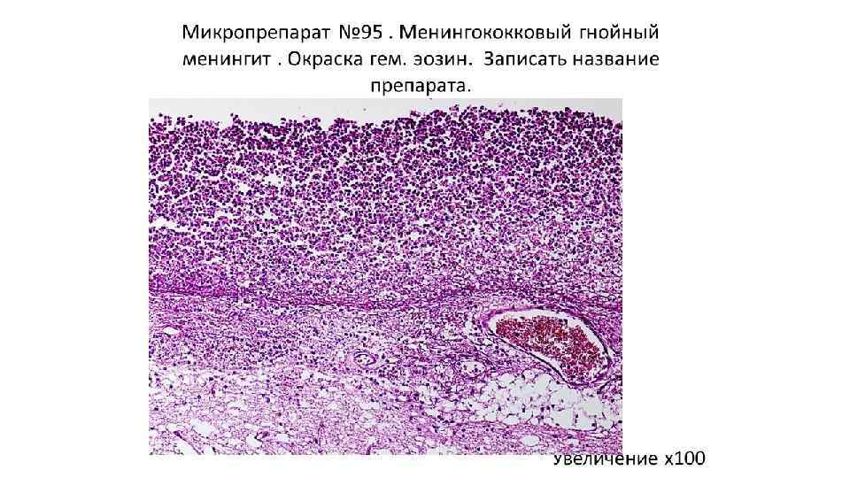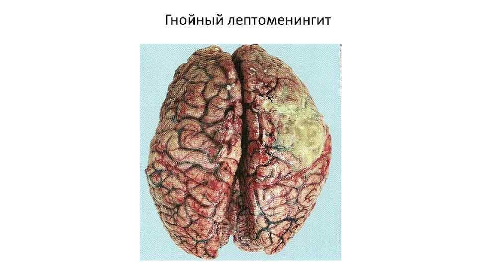 Период разгара. Менингококковый менингит • Адгезия и колонизация менингококков на эндотелии сосудов мягких мозговых оболочек и сосудистых сплетений головного мозга • Транслокация (трансцитоз) возбудителя через гематоэнцефалический барьер • Нарушение проницаемости сосудов менингеальной оболочки, транссудация жидкой части плазмы, миграция нейтрофилов и макрофагов. • Фагоцитоз с частичной гибелью возбудителя • Развитие гнойного воспаления в мягкой мозговой оболочке (менингит), эпендиме желудочков мозга (эпендиматит, вентрикулит), веществе головного мозга (энцефалит) • Гиперпродукция ликвора с нарушением ликвородинамики, увеличение внутричерепного давления с дальнейшим возможным исходом в гидроцефалию