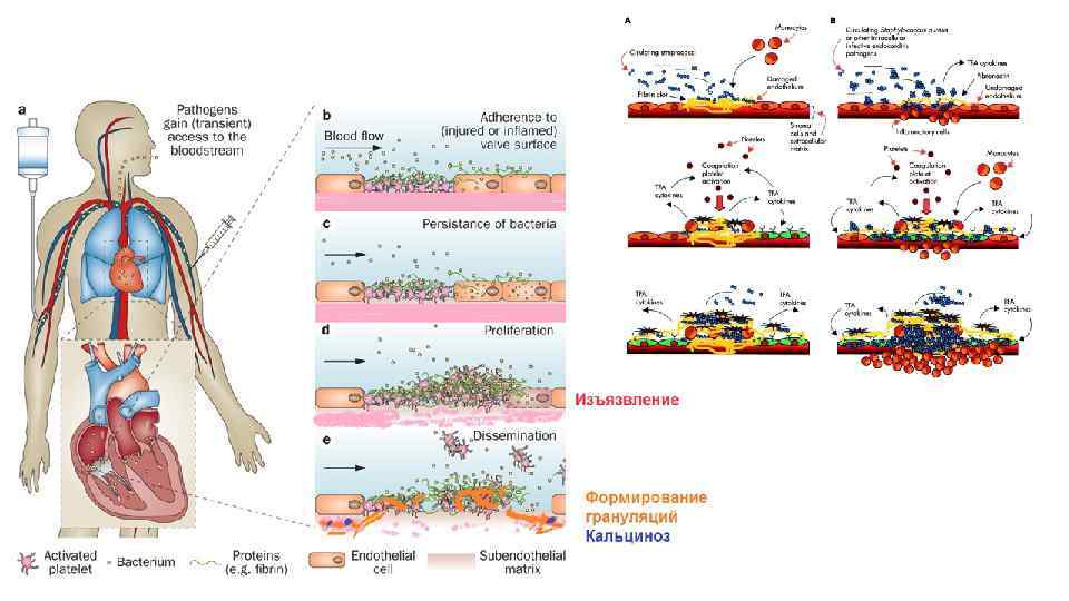Этиология и патогенез инфекционного эндокардита (ИЭ) - 1 • Необходимые условия для развития ИЭ: • Бактериемия (любые инвазивные процедуры (даже манипуляции стоматолога)) • Реактивность организма • Свойства возбудителей (патогенность, вирулентность) • К типичным возбудителям ИЭ относят грамположительные кокки (стрепто- и стафиллококки), а также грамотрицательные микроорганизмы из группы HACEK (роды Haemophilus, Actinobacilus, Cardiobacterium, Eikenella, Kingella) и Rothia dentocariosa • Локализация процесса на конкретных клапанах определяется также путем проникновения и циркуляции возбудителя в кровотоке, так например эндокардит 3 -хстворчатого клапана у инъекционных наркоманов или при постановке венозного катетера