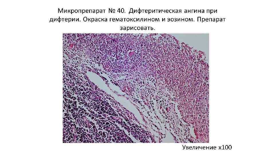 Дифтерия Период разгара. Размножение возбудителя в области входных ворот. Нарастание синтеза гистотоксина. Токсинемия. Некроз покровного эпителия, формирование очагов фибринозного воспаления. Поражение органов-мишеней гистотоксином. Отторжение фибриновых пленок, формирование истинного крупа. Период реконвалесценции. Формироваие антитоксического и антибактериального иммунитета, репаративные процессы в пораженных слизистых оболочках и органах-мишенях.
