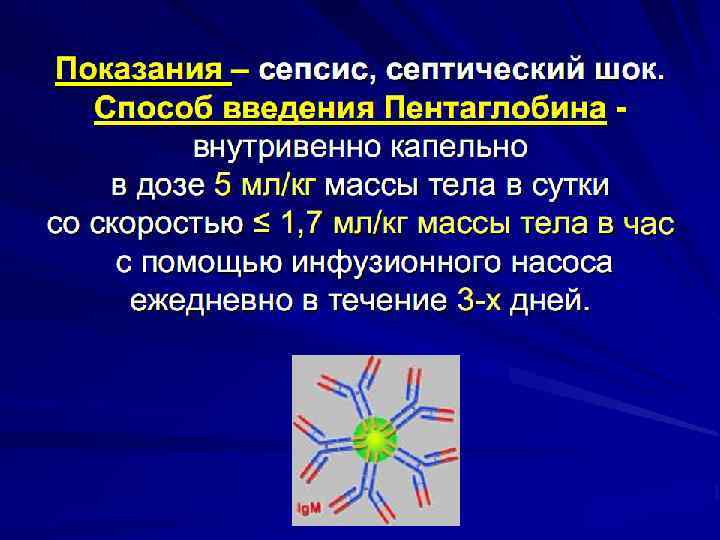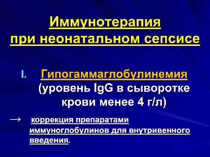 При стафилококковом сепсисе антистафилококковая плазма или антистафилококковый иммуноглобулин в течение 7 -10 дней подряд. При сепсисе, возникшем на фоне вирусной инфекции или осложнившемся ею - специфические иммуноглобулины (противогриппозный, противогерпетический и др. ).