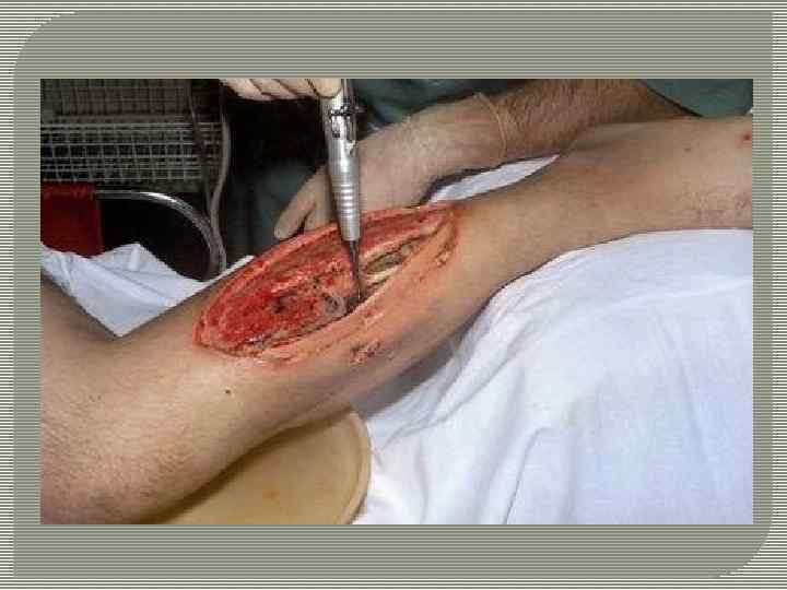 И ЛЕЧЕНИЕ На догоспитальном этапе оказывается неотложная медицинская помощь, объем которой зависит от наличия различных симптомов и синдромов. При гипертермии вводятся жаропонижающие средства (50%-ный раствор анальгина внутримышечно), литические смеси, антибиотик широкого спектра действия. На госпитальном этапе проводят: • санацию очага инфекции и всего организма; • коррекцию нарушений функций жизненно важных органов, а также сдвиги метаболического характера; • стимуляцию ответной реакции организма на внутренние инфекции. Для санации очага инфекции хирургически обрабатывают гнойные раны и метастатические очаги с максимальным удалением некротических тканей и гноя, дренированием перфорированными полиэтиленовыми дренажами, длительным промыванием полостей растворами антисептиков, последующим наложением первичных, отсроченных первичных или вторичных швов.