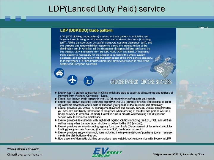 LDP(Landed Duty Paid) service Page 14 www. everest-china. com China@everest-china. com All rights reserved © 2011, Everok Group China