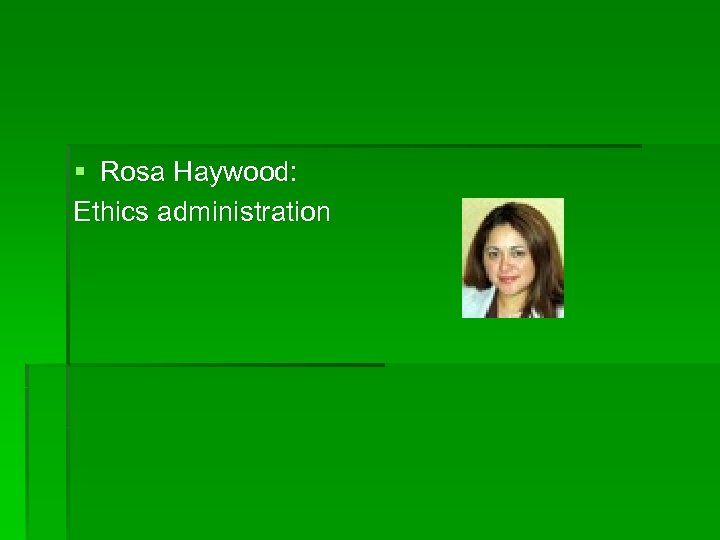§ Rosa Haywood: Ethics administration