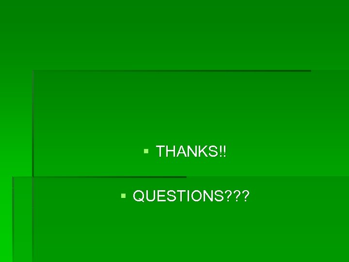 § THANKS!! § QUESTIONS? ? ?