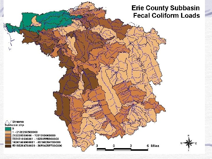 Source Area and Water Quality Impact Assessment Use GIS to divide watershed into sub-basins Identify potential contributing structures within 300 ft. of all waterways Calculate fecal coliform load from structures in each subbasin Use BASINS version of HSP-F/NPSM to model flow from each sub-basin Fecal coliform load/flow = Fecal coliform concentration
