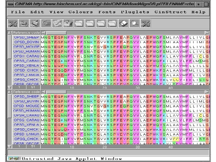 Editors on the Web • Check out CINEMA (Colour INteractive Editor for Multiple Alignments) – It is an editor created completely in JAVA (old browsers beware) – It includes a fully functional version of CLUSTAL, BLAST, and a Dot. Plot module http: //www. bioinf. man. ac. uk/dbbrowser/CINEMA 2. 1/