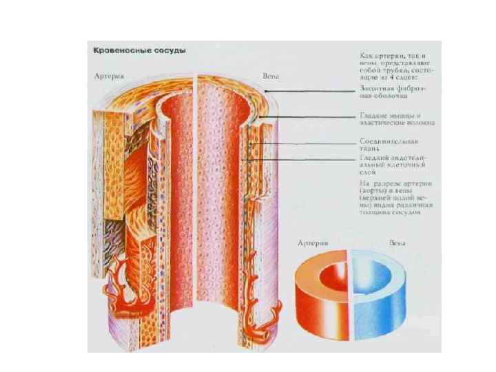 Строение кровеносных сосудов Сосуды, по которым кровь выносится из сердца и поступает к органам, называются артериями, а сосуды, приносящие кровь к сердцу, - венами.
