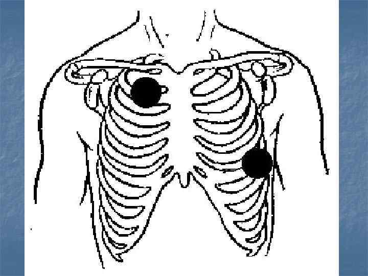 Среднеключичная линия Должная позиция стернального электрода Передняя подмышечная линия Средняя подмышечная линия Правильное положение апикального электрода (два варианта) Каждая минута задержки выполнения дефибрилляции увеличивает риск смерти больного на 10%