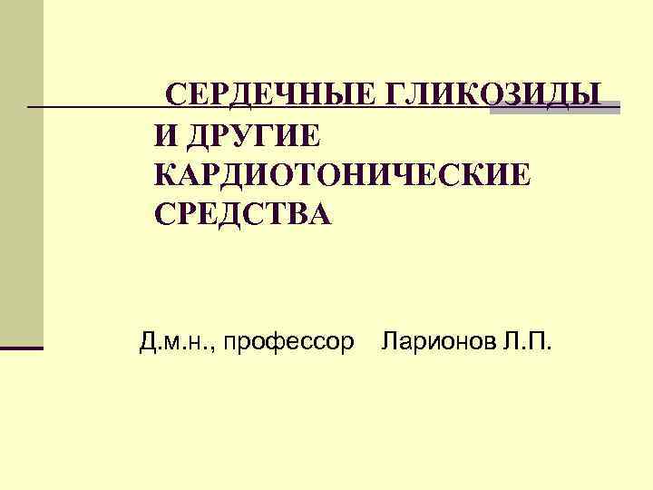 СЕРДЕЧНЫЕ ГЛИКОЗИДЫ И ДРУГИЕ КАРДИОТОНИЧЕСКИЕ СРЕДСТВА Д. м. н. , профессор Ларионов Л. П.