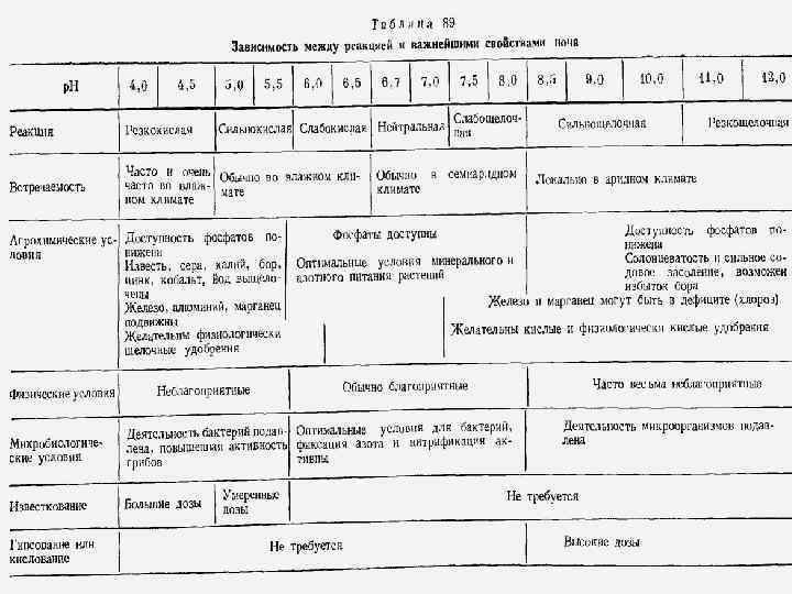 Значения р. Н почвенного раствора, оптимальные для развития сельскохозяйственных растений и микроорганизмов