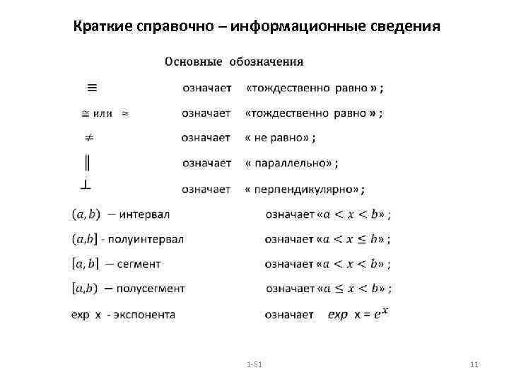 Краткие справочно – информационные сведения 1 -51 11