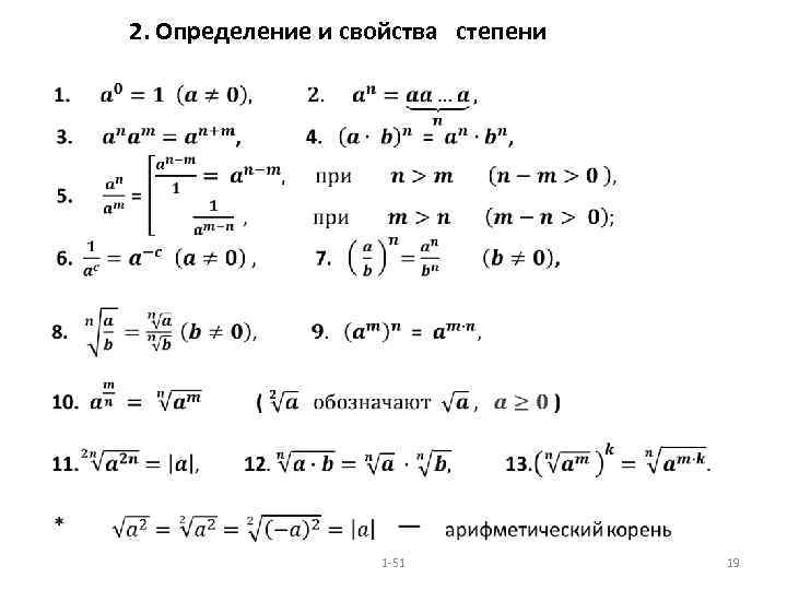2. Определение и свойства степени • 1 -51 19