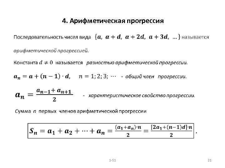 4. Арифметическая прогрессия • 1 -51 21