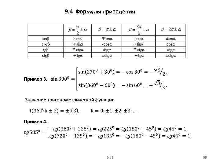 9. 4 Формулы приведения 1 -51 33